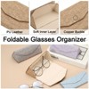 This foldable glasses case is portable for sunglasses eyeglasses and more. Protect your glasses and foldable for saving luggage space it is an excellent travel companion fitting easily into backpacks purses or pockets without adding bulk. This glasses case has lightweight structure, easy to carry outside. When not in use, fold it up and store it without taking up space.