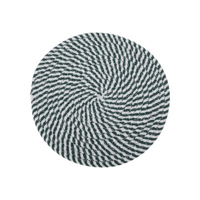 Unique Bargains Trivet Round Rope Woven Mat Cotton Non-woven Fabric 7.87"x7.87"x0.31" White Blackish Green Stripes