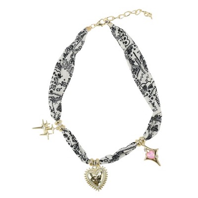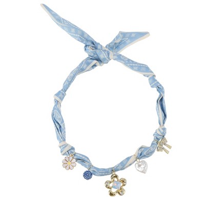 Unique Bargains Versatile Scarf Necklace with Charm Adjustable Tie Statement Choker for Women Apricot White Blue 1 Pc
