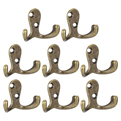 Unique Bargains Wall Zinc Alloy Double Prong Retro Hooks for Hanging