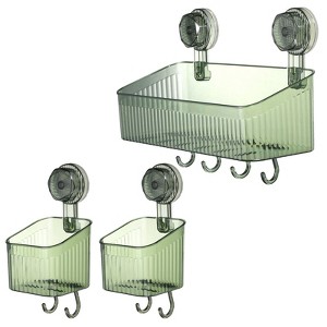 Unique Bargains Wall Mount Strong Suction Cup Shower Caddy with Hooks 3 Pcs