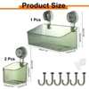 This suction cup shower caddy features a robust design made from thickened PET material, providing durability and a strong load-bearing capacity. It can hold up to 55 pounds without any risk of falling. The caddy is equipped with a raised guardrail to prevent items from tipping over and wide openings for easy access. Drainage holes on the base aid in quick drying, while movable hooks at the bottom enhance versatility for hanging various items. Installation is simple and requires no drilling, screws, or glue, making it easy to set up on smooth, dry surfaces and easy to remove without leaving traces. This organizer is suitable for multiple surfaces, including tiles, glass, and polished metals, making it ideal for shampoo, shower gel, cosmetics, and more, ensuring a practical storage solution for both bathroom and kitchen essentials. The package includes 2pcs small suction cup shower caddy with 4 pieces of hooks, and 1pc of big suction cup shower caddy with 4 pieces of hooks.