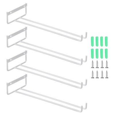 Unique Bargains Wall Mountable Under Cabinet Hanger Wine Glass Rack 4 Set