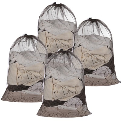 Made of high-density polyester material with double-stitched seam construction, resistant to tear or wear, not easy to fade or break, sturdy and durable. The drawstring closure prevents the spill of inside items during transportation. The laundry hamper keeps clothes clean and fresh. Machine washable and easy to clean, organize dirty clothes, and maximize your room utilization. Take out the laundry bag to put clothes into the washing machine. Great for holding dirty clothes, quilts, blankets, pillows, towels, sports gear, beach items, etc. The laundry bags are suitable for travel or camping.