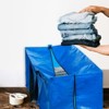 The extra-large moving bag can be a substitute for the moving box and organizer. These packing bags are water-resistant, durable, and foldable, making them ideal for storage, space-saving, camping, and holiday packing. The strong and durable oversized moving bags protect your clothes from dust and moisture, while the reinforced handles prevent tearing. Lightweight, portable, and collapsible, these storage bags can be easily stored when not in use to save space. They are great for closet organization, storage of quilts, utility room storage, outdoor camping, and holiday decorations storage. Please confirm the size before purchase. The load capacity of each storage bag is 50 lb, so please do not overload.