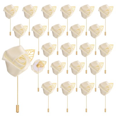 Unique Bargains Wedding Groom Boutonnieres Rose Flower Lapel Pins for Men 1 Pc Beige
