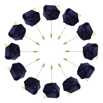 Unique Bargains Wedding Groom Boutonnieres Rose Flower Lapel Pins for Men 1 Pc Navy Blue