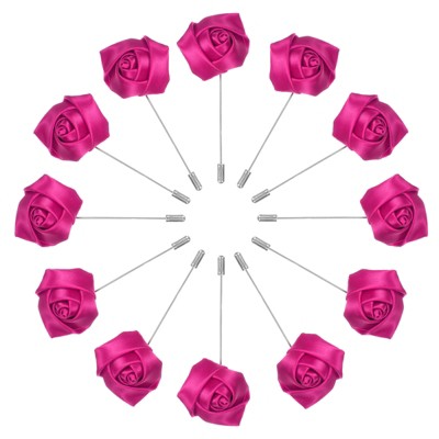 Unique Bargains Wedding Rose Men Suit Boutonnieres Lapel Pin 1 Pc Wine-Red