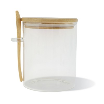 Unique Bargains with Bamboo Lid & Spoon Decorative Jars Wood Color Clear 1 Set