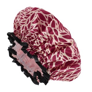 Unique Bargains Women Double Layer Leaves Shower Cap Red 1 Pc