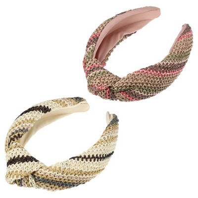 Unique Bargains Women's Bohemian Style Knotted Straw Rattan Sponge Headband Green Orange 2 Pcs