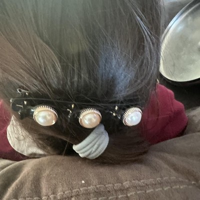 Unique Bargains Women's Cute Flower Pearl Hair Clips 3.66"x0.43"x1.26" Black 2 Pcs