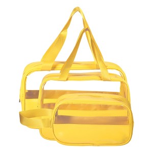 Unique Bargains Women's Durable Transparent Patchwork Makeup Bag 3 Pcs