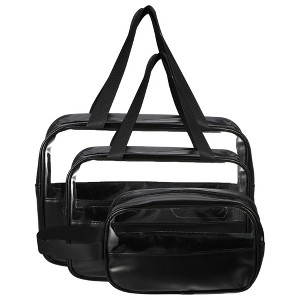 Unique Bargains Women's Durable Transparent Patchwork Makeup Bag 3 Pcs