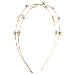 Unique Bargains Women's Elegant Double Layer Moon Headband 4.72" ID Gold Tone 1 Pc