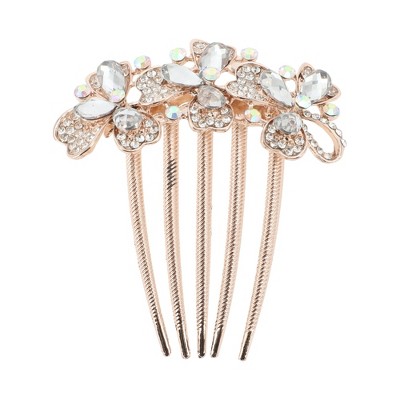 Unique Bargains Women's Fashion Rhinestone Inlaid Flower Hair Side Comb 3.54"x2.76" 1 Pc White