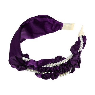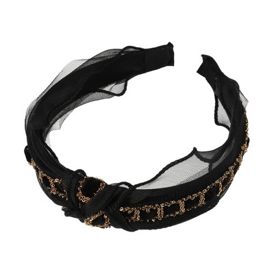 Unique Bargains Women's Fashion Wide Faux Pearl Bead Knotted Headbands 1 Pc Black