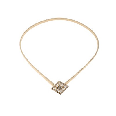 Unique Bargains Women's Faux Pearl Waist Chain Gold Tone 1 Pc