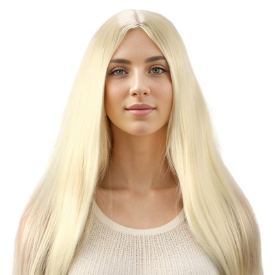 Unique Bargains Women's Big Curly Long Hair Wig High Temperature Fiber Gold Tone 1 Pc 30in