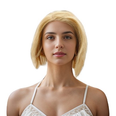 Unique Bargains Christmas Women's Straight Long Hair Wig 4x4in 180 Real Human Hair 12in Yellow Black 1 Pc