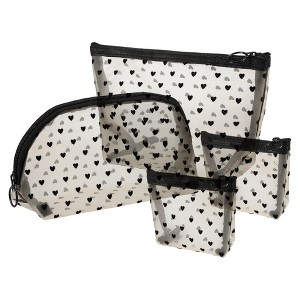 Unique Bargains Women's Heart Shape Print Mesh Makeup Bag 4 Pcs