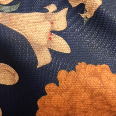This is more beautiful in person. I LOVE this it’s like a waxed cotton and the print is so beautiful. I wish they had more items available in this print. I travel internationally often so I wanted something small. I don’t have a lot of unnecessary makeup. Exactly what I wear but no more. It has two internal pockets. It would certainly hold more than I carry. I think it’s a perfect size makeup bag.