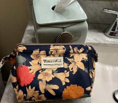 I really like this bag. Besides being pretty, it seems well made and durable and is a perfect size to carry the makeup & travel size lotions I usually travel with.