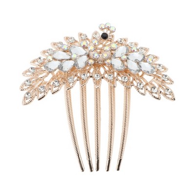 Unique Bargains Women's Retro Inlaid Flower Hair Side Comb 3.35"x3.15" 1 Pc Champagne