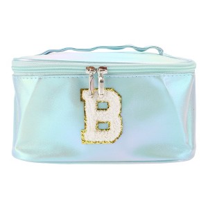Unique Bargains Women's Square Letter B Makeup Bag Blue 1 Pc
