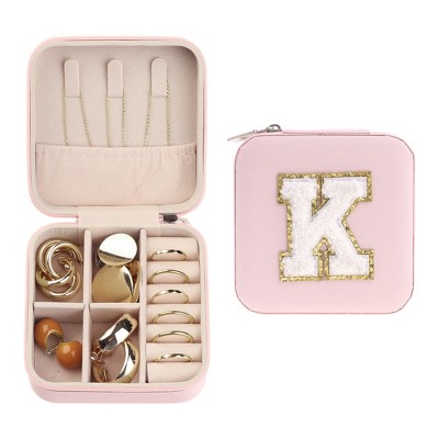 Unique Bargains Women's Teen Girl Gifts Small Portable PU Leather Jewelry Storage Case 2 Pcs Pink Letter-K