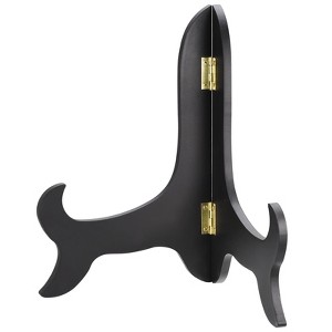 The easel plate holder is crafted from wood, offering robustness and the convenience of rotation and folding for easy storage. It's perfect for displaying certificates, plaques, photos, picture frames, artwork, paintings, postcards, and CDs. This versatile stand enhances the decor of homes, offices, cafes, restaurants, art classes, bookstores, and weddings, looking great on desks, tables, shelves, and counters.