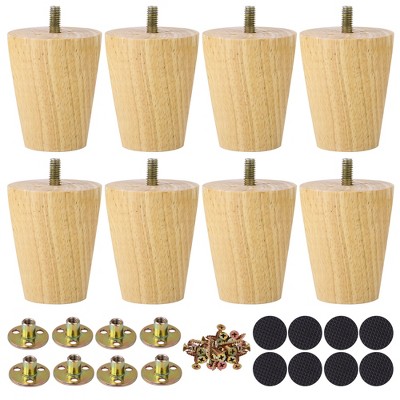 Unique Bargains Wood Furniture Sofa Dresser Legs Round Mid-Century Modern Replacement Feet Set of 4 Wood Color 3.1 Inch
