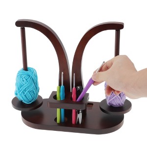 - Yarn holder stand includes 3 storage areas for accessories, keeping items organized