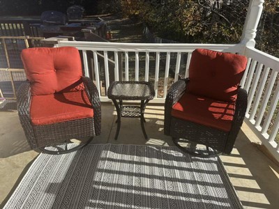 EASY CARE: For an outdoor rug, remove debris frequently with the use of a broom or blower. To wash, spray the surface with a soap and water mixture, then rinse thoroughly with a garden hose and hang over a railing to dry thoroughly. Rotate for even wear.
