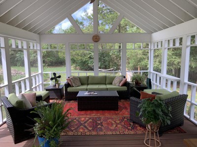 My two beautiful Tribal rugs makes me feel like I’m in the Taj Mahal on my back porch.