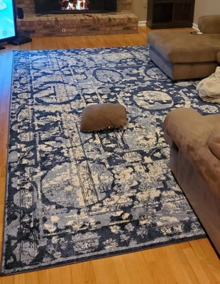 I couldn't be happier with this rug! It arrived quickly. The size works great in our family room, and the blue gives a great pop of color to our greige room. I have received many compliments on it (well...actually them...I have one in the dining space and one in the family room)!