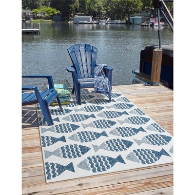 Unique Loom Outdoor Coastal Pesci Fishes Woven Area Rug - 1 of 4
