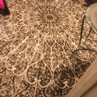 This carpet came folded in a million different directions making it have horrible creases. Plus there is an orange thread down the carpet that shows through the grey/white fibers. Not happy returning this item.