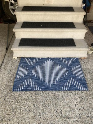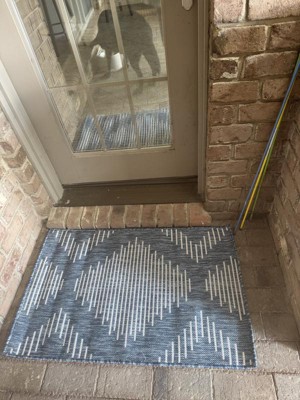 This rug is way too lightweight to be marketed as an outdoor rug! It blows all over the place. Considering it would normally be placed in front of a door due to its size, nothing can really be placed on it to weigh it down. It is also extremely thin, no padding whatsoever. I would not recommend this rug at all.