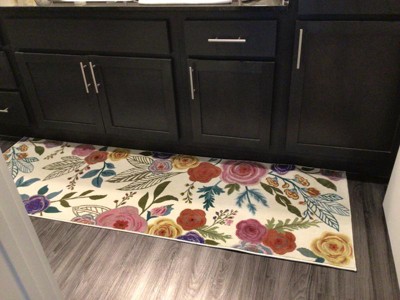 I love this rug! The colors are so pretty and the rug is super soft. On my way to buy a third one for my kitchen!