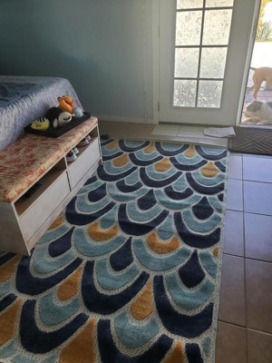 [This review was collected as part of a promotion.] I was surprised actually when I set this rug out how soft it was. My other outdoor rugs are crinkly and stiff but this one where the colors are is a soft low pile texture very pleasantly surprised . It's a great looking rug that actually has quite a bit of detail and colors mesh really well with my pool furniture . The design is nice looking and the size is perfect and again love how soft it was but really love how much this rug can pull an area together , exactly what I needed .
