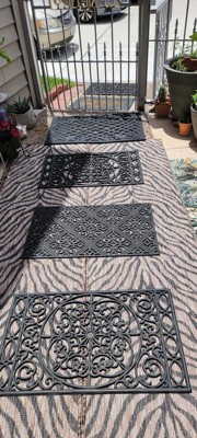 My entrace is long. Purchased 2 Zerbra print outdoor runners and put them side by side. I love the look.