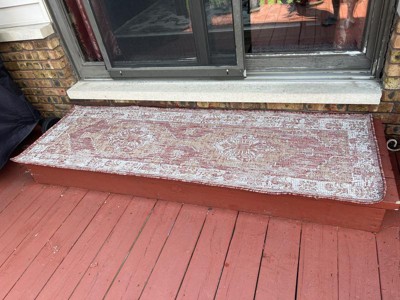 • EASY CARE: For an outdoor rug, remove debris frequently with the use of a broom or blower. To wash, spray the surface with a soap and water mixture, then rinse thoroughly with a garden hose and hang over a railing to dry thoroughly. Rotate for even wear.