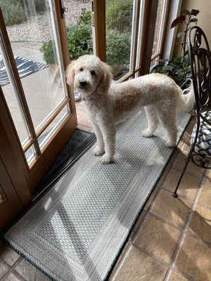 Perfect for the deck. My dog has pulled his blanket to lay on it and the rug.