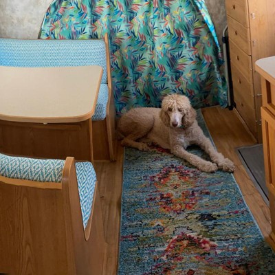 This rug is beautiful and exactly as pictured. The colors were just as pictured and tie the colors in my remodeled motorhome together beautifully.