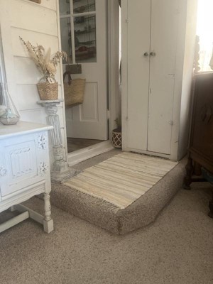 Just wanted a small rug to add to sewing room that wouldn’t clash with the decor but would add some comfort when I have to stand and do some cutting. I certainly found it in this rug that I can easily shake out when pieces of thread and material fall onto it. Price was very reasonable and overall I’m pleased with my purchase and have a couple other areas where I plan on putting others.