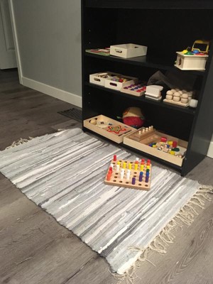 I like that it’s all natural and washable. I use it by my kid’s play shelf as a “work area”, inspired by Montessori ideas.