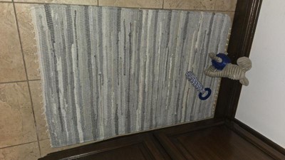 LOVE these chindi hand woven cotton rugs for 5 reasons: 1) Timeless, yet modern style; 2) LOVE LOVE LOVE the multi-tonal gray; 3) Come in multiple sizes (I have a 6'x4' in my foyer, a 10'x14' in my sitting room, and bought several 2'x3's for our Italian Mastiff as he loves them too - so we have one for him in multiple rooms in our home, as well as one for travelling/visting loved ones; 5) They are machine washable/easy to clean! My last chindi lasted over a decade (I still use it in my mud room) - I hope these last just as long as they go so well with my decor!!