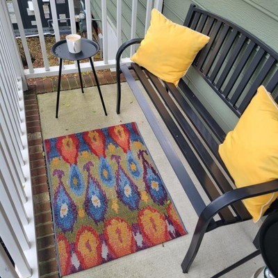 Love this small, yet bold rug! Great colors and pattern for a small space. I have a larger size of the exact same rug that has held up beautifully for three years. That experience influenced me to make a smaller purchase for our front porch.