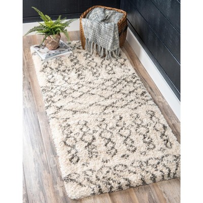 Unique Loom 2' 6 x 19' 8 Runner Solid Shag Lilac Runner Rug